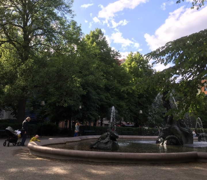 Jag sitter en stund vid fontänen på Mariatorget och vilar mig. Det är dags att skriva det allra sista inlägget i mitt bidrag till årets Blogg100. Vid slutet av en process är ögonblicket helt fyllt av innehåll.